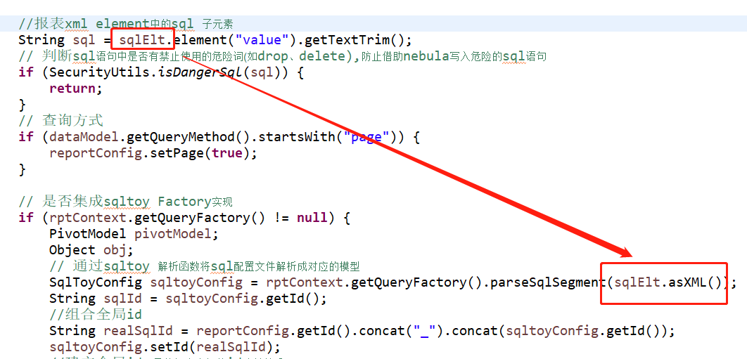 * Sql部分xml片段交sqltoy托管的过程代码: