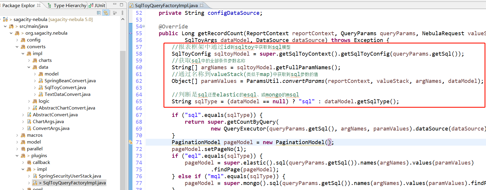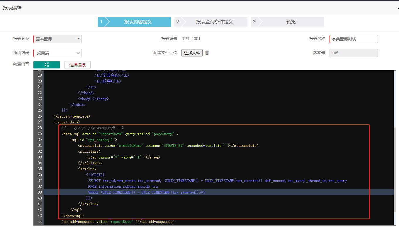 sqltoy打造的并不是仅仅面向常规应用开发,比如写管理系统后台、写微服务接口实现等,还面向报表平台、以及目前流行的低代码平台(基于页面配置化完成传统功能页面、接口服务开发部署过程的新开发业态),比如:目前我司基于sqltoy开发的sagacity-rainbow快速接口开发框架和sagacity-nebula报表框架。