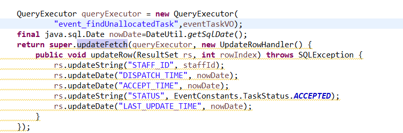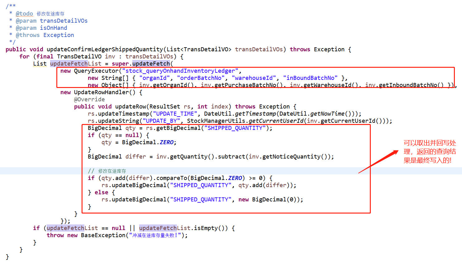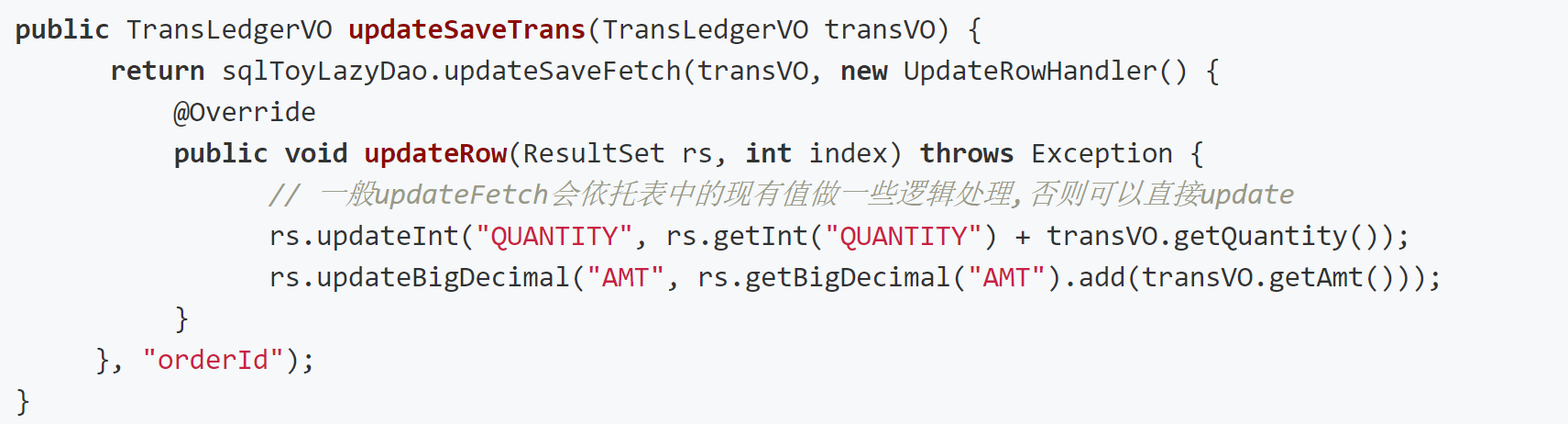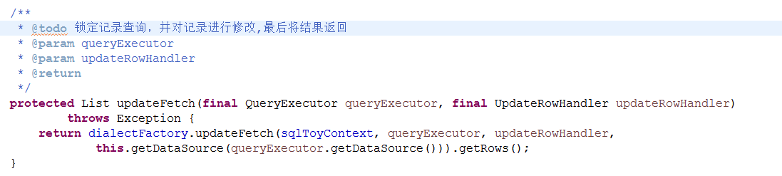2、 **updateFetch 的查询语句无需自己写for update这类语句,框架会自动补充**