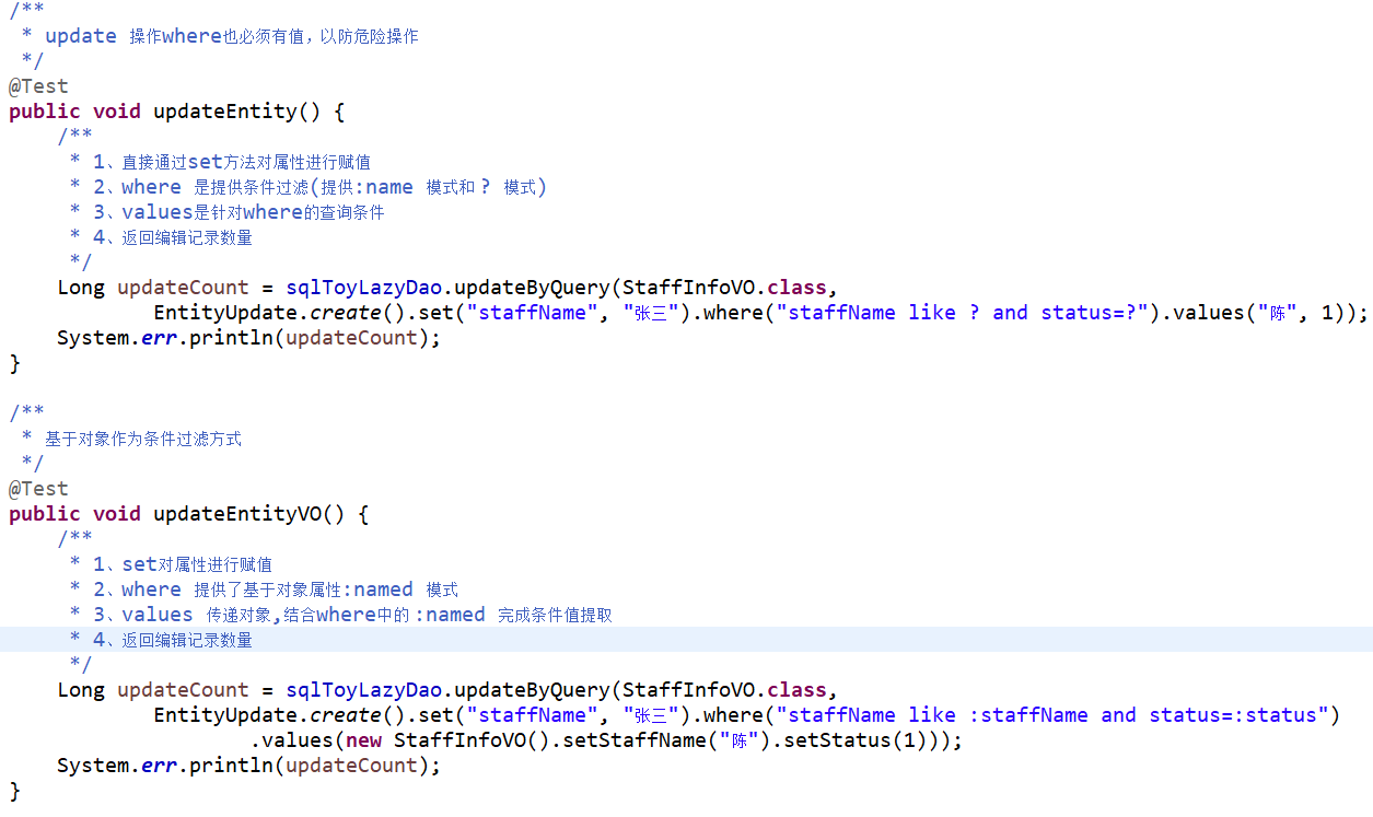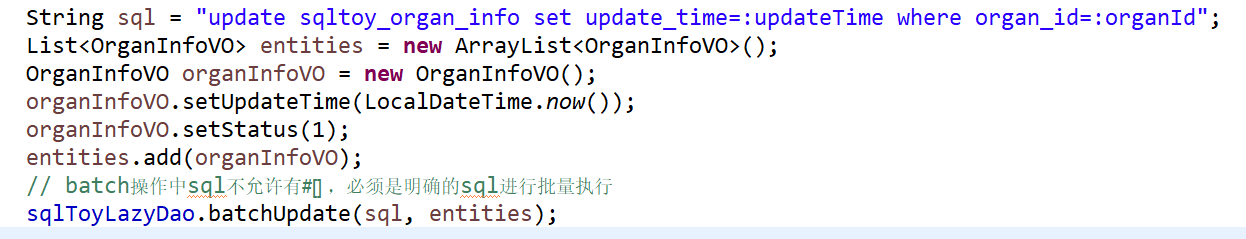 注:批量更新不涉及级联更新,只针对当前VO对象的表进行修改。