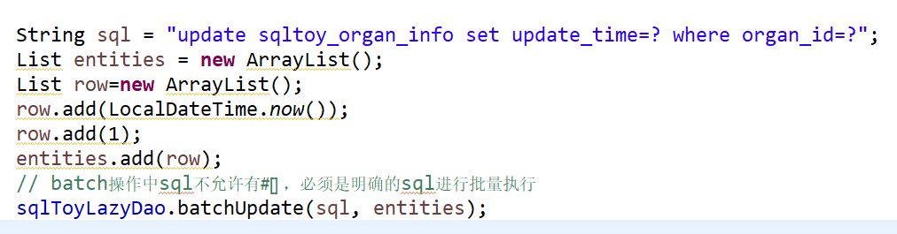 提供传统sql批量执行机制(一般都可以通过saveOrUpdateAll等POJO实现)