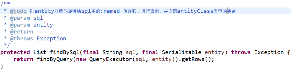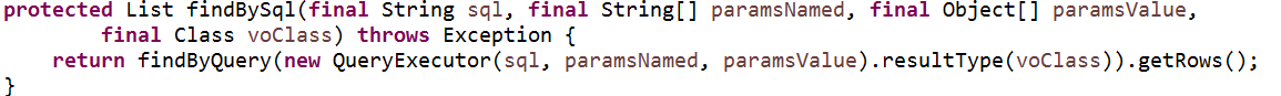 * QueryExecutor:用来包装查询参数的合集类,同时queryExecutor采用链式赋值,如: