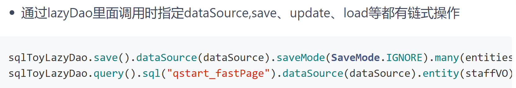 * SqlToyLazyDao中findByQuery、findPageByQuery等QueryExecutor中都可以设置dataSource