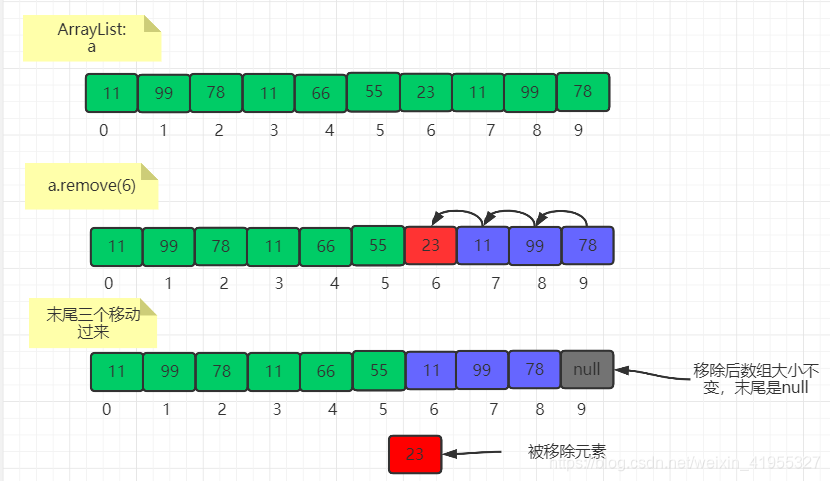 int numMoved = size - index - 1;//删除23,则后面的元素的位置index 7 8 9,所以需要3个