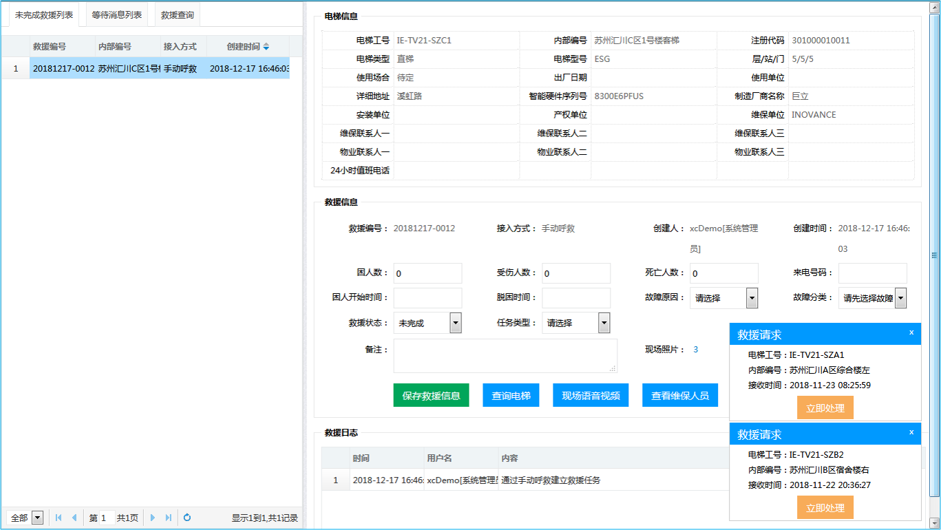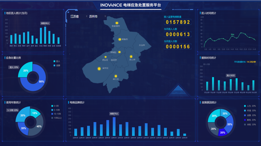 主要功能:部署于指挥大厅,可管理辖区内所有电梯设备状态。