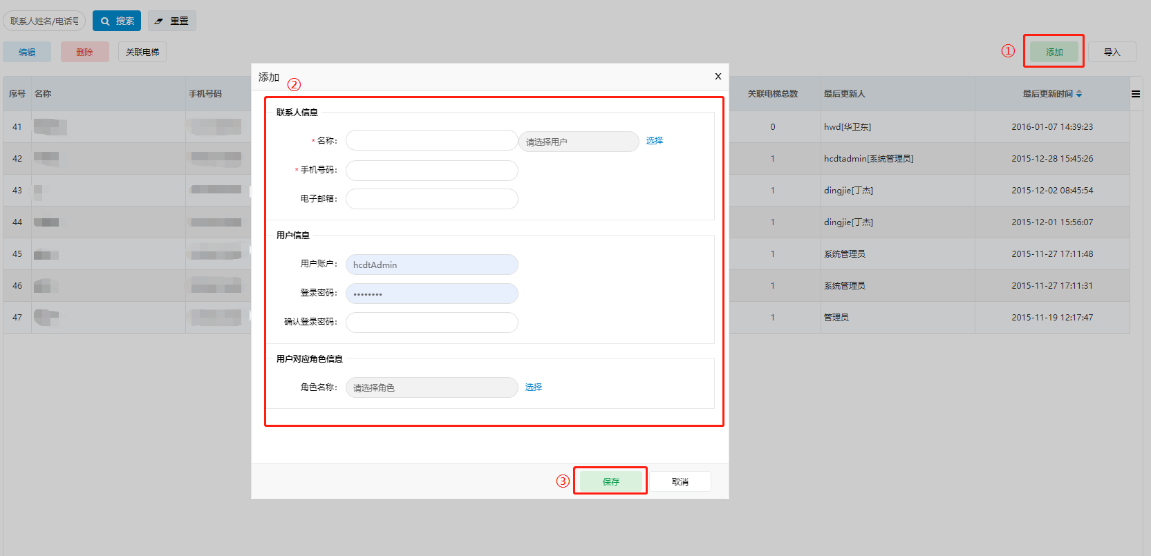 用户可以通过此功能对发生故障时需要通知的联系人信息进行管理及维护。
