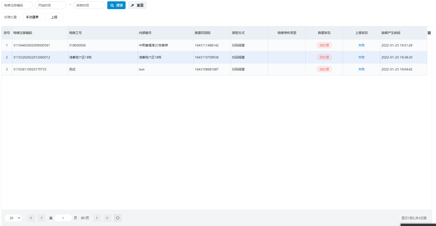 救援任务的主要功能是可以手动故障处置、手工建立救援任务单、将救援任务进行上报。