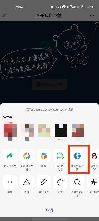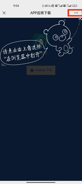2. 单击“Android下载”按钮,如果是在微信中扫码,请按照提示在右上角选择“在浏览器中打开”。