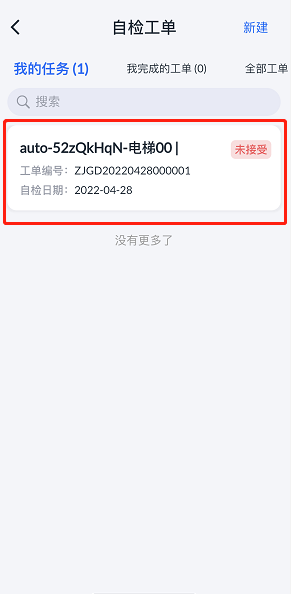 2. 在工单列表中,单击“未接受”的自检工单,进入“自检工单详情”页面。