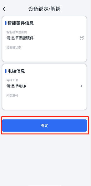 1. 输入智能硬件信息和选择对应的电梯,单击“绑定”按钮,完成绑定。