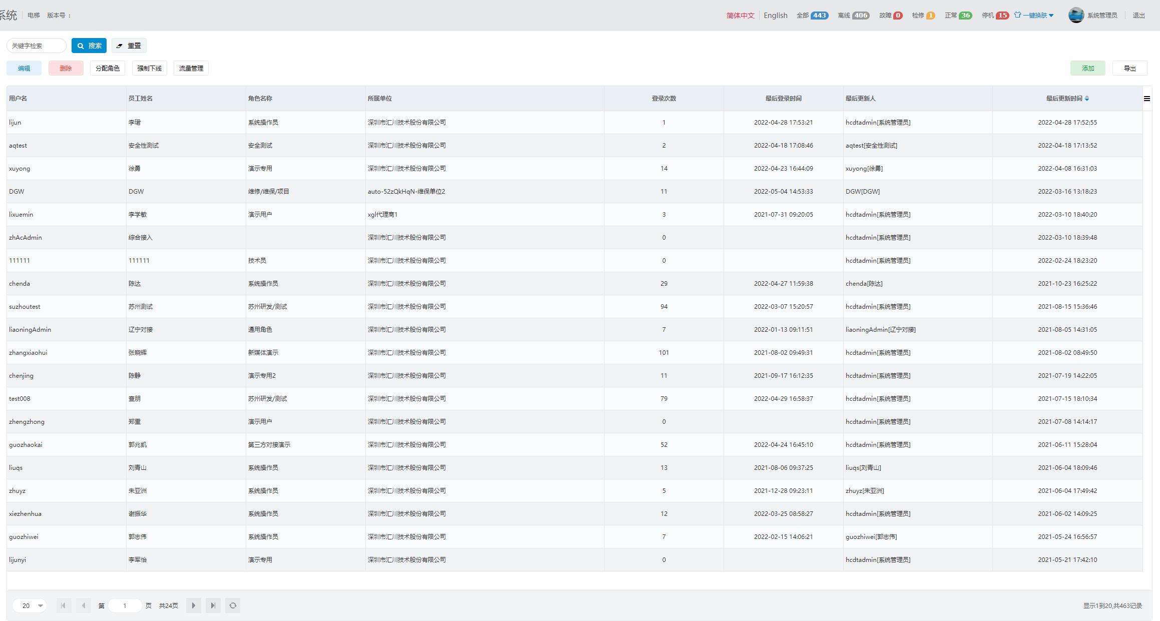 1. 登录电梯物联网平台,选择“权限管理>用户管理”,进入“用户管理”页面。