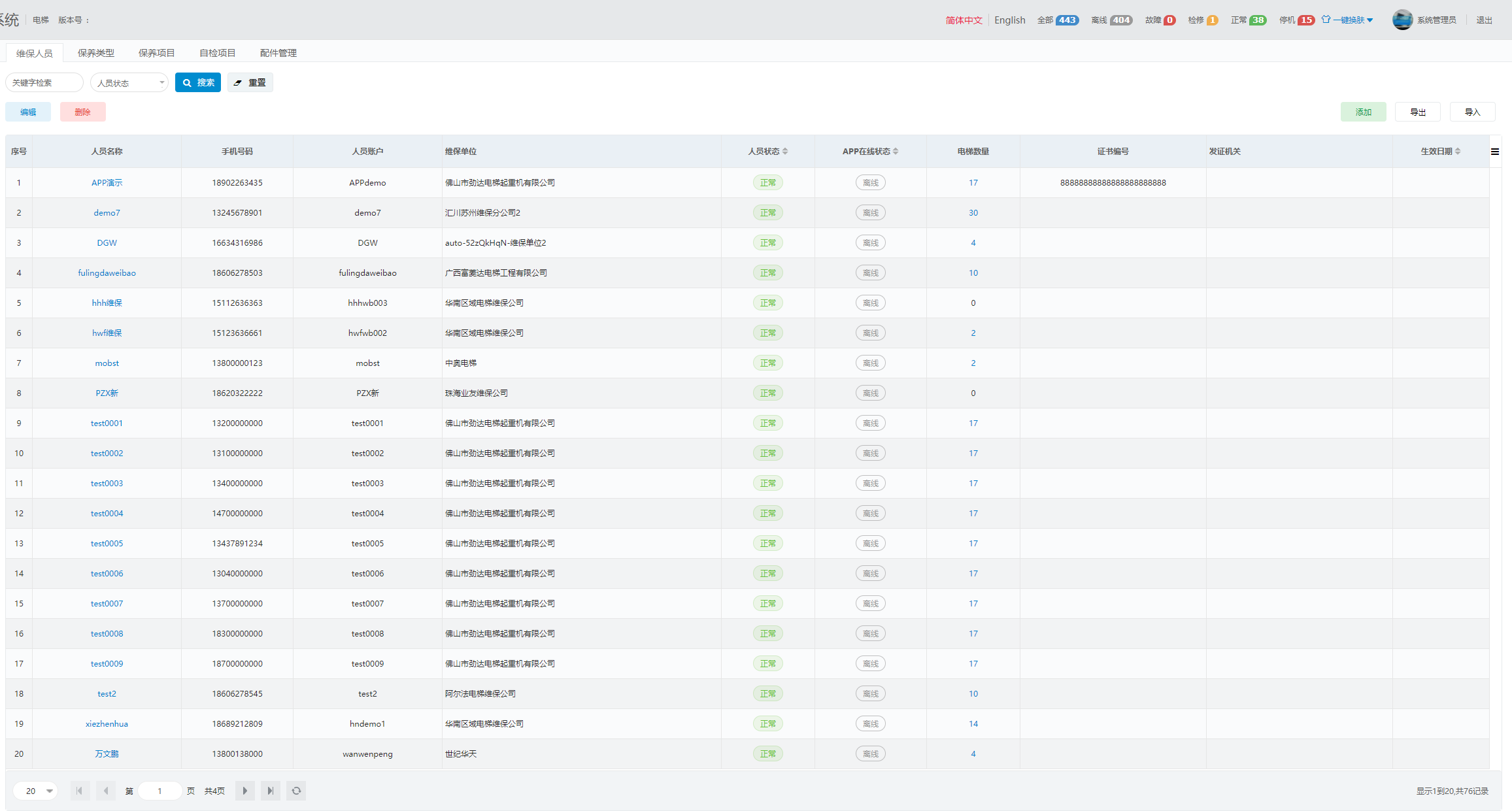 - 维保人员管理