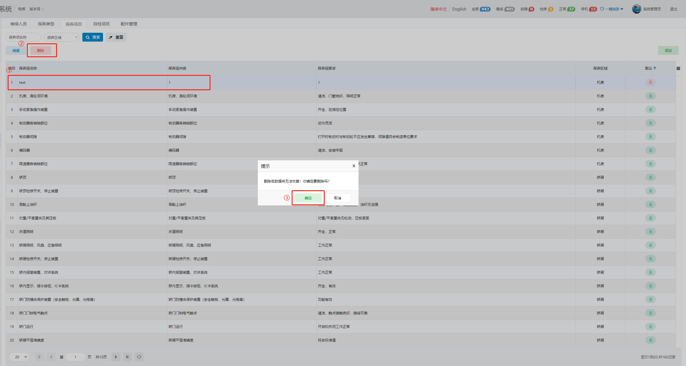 支持对保养项目进行删除。