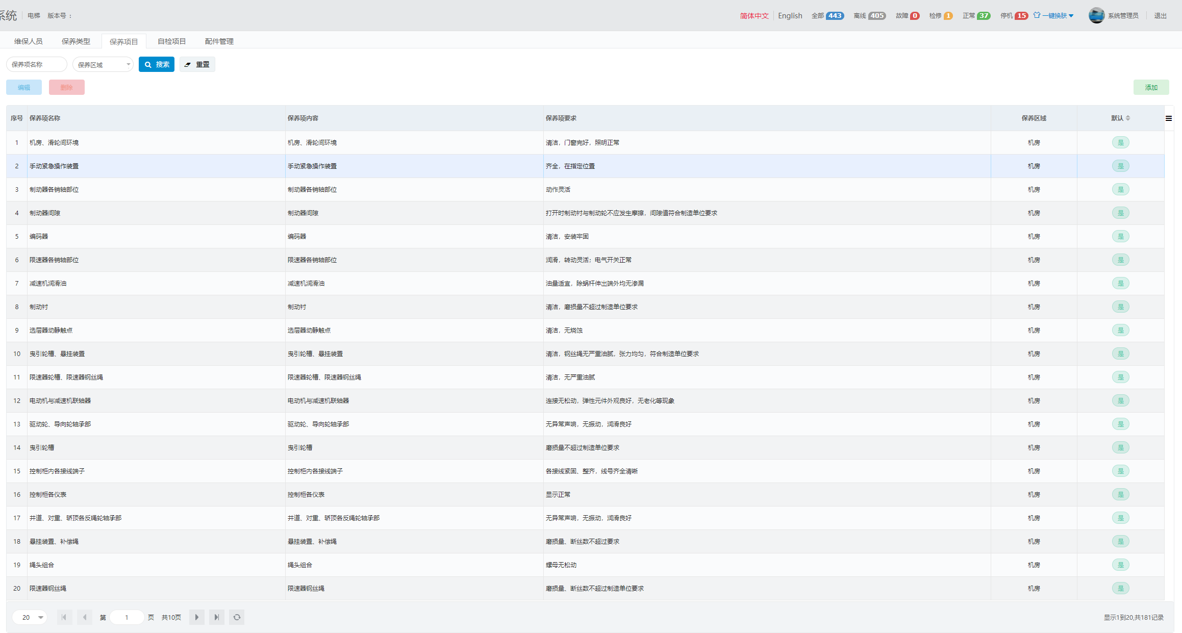 1. 选择“保养项目”页签,选择一条保养项目,单击左上角“编辑”按钮,输入相关信息,单击“确定”按钮,完成保养项目编辑。