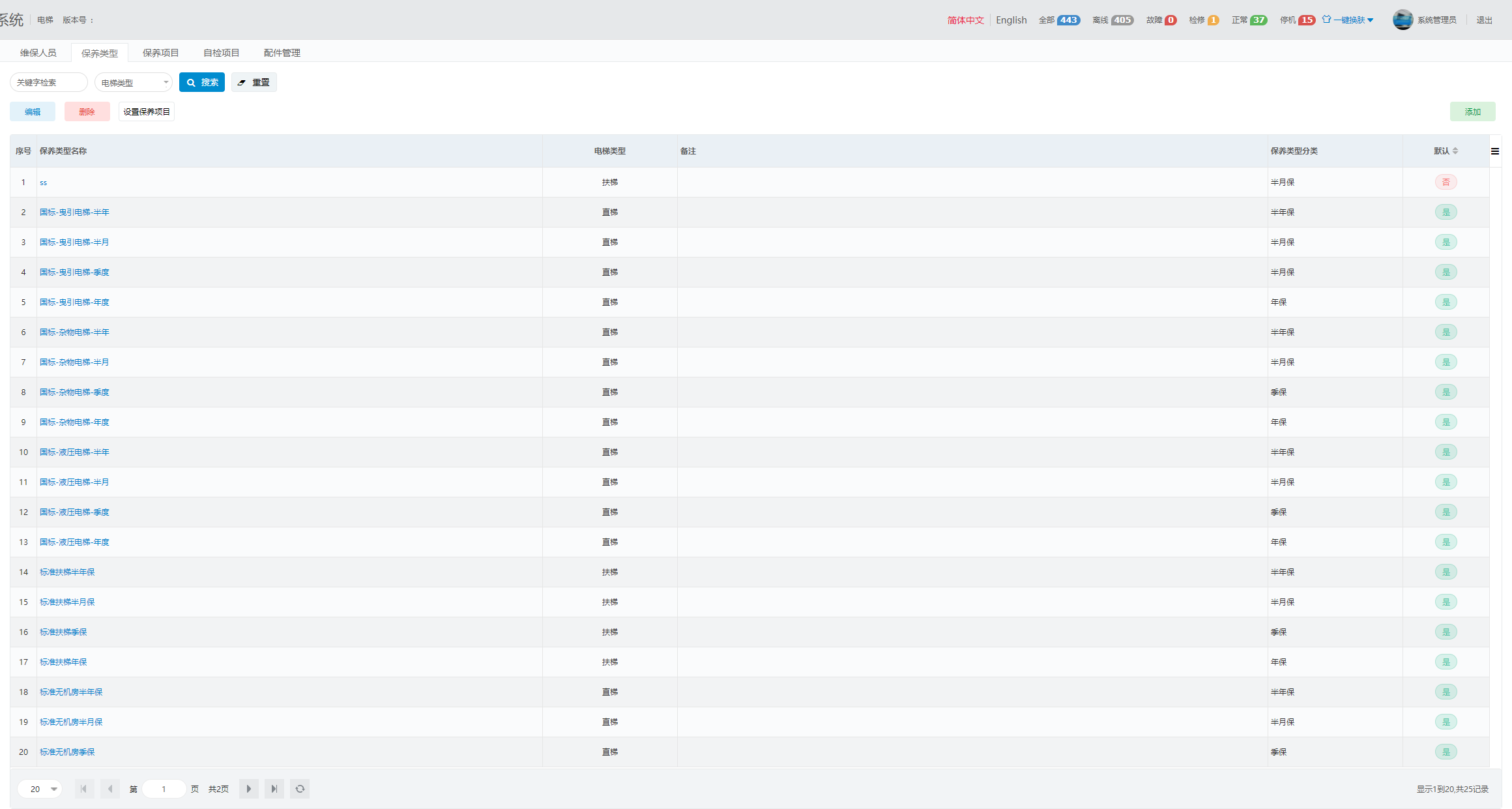 1. 选择“保养类型”页签,选择一条保养类型,单击左上角“删除”按钮,单击“确定”按钮,完成保养类型删除。