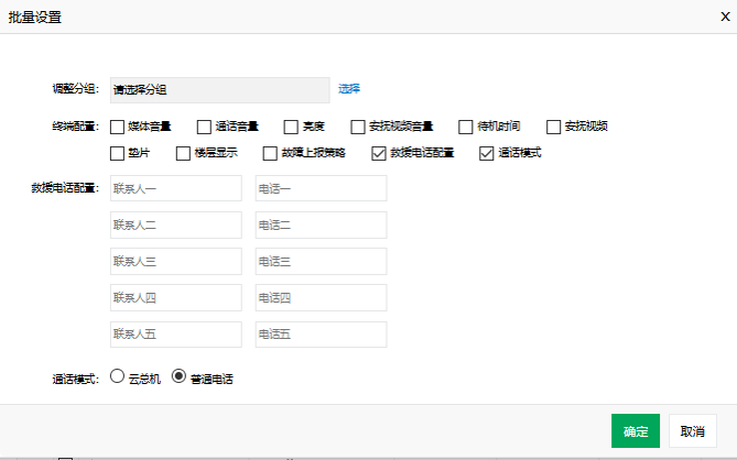 * 设备管理:设置设备声音、楼层显示、电话报警等功能。