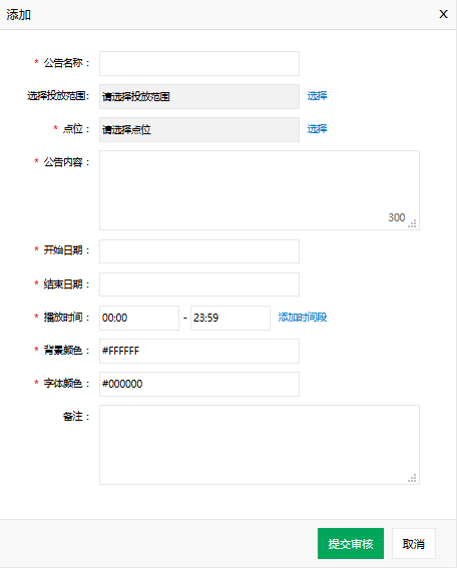* 选择点位(要下发公告的清单),设置公告内容,时间,颜色等。