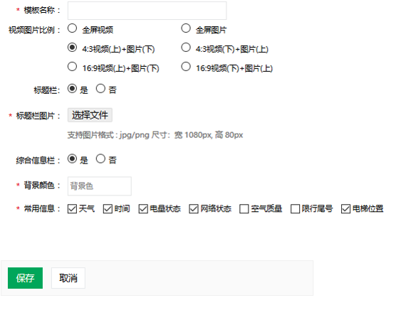 * 模板:每个节目播放的形式(全屏、分屏,是否带标题和状态栏等)。