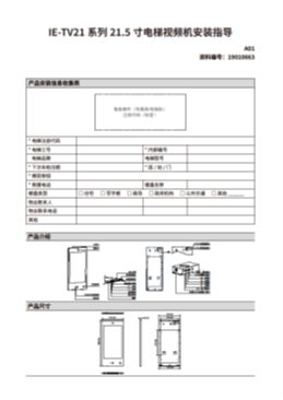 设备调试的目标是使设备上线,后续通过远程配置。具体安装指导请参考[《IE-TV21系列21.5寸电梯视频机安装指导》](https://www.inovance.com/hc/serviceSupport/download/search?key=IE-TV21)。