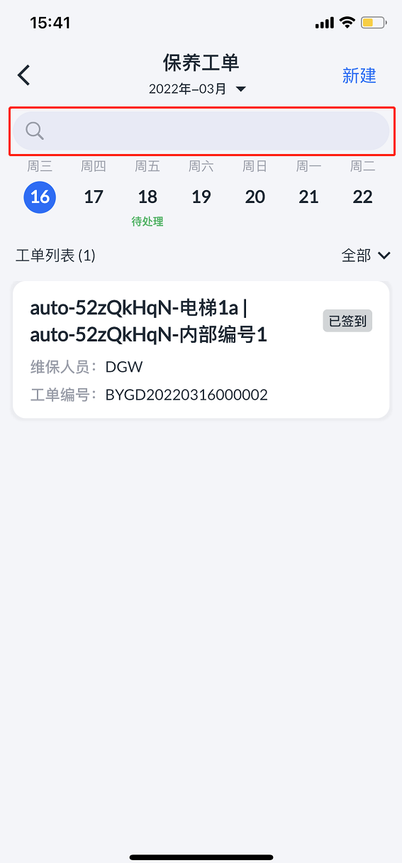 2. 在上方输入搜索关键字,即可搜索对应的保养工单。