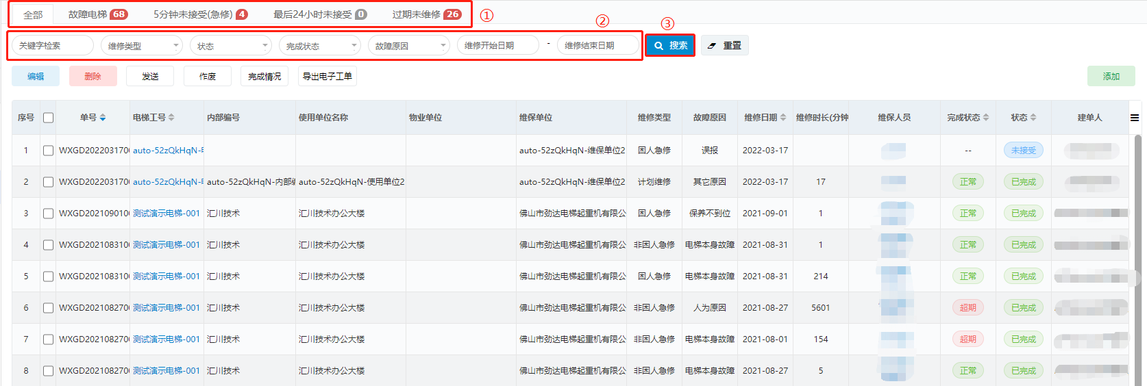 - 搜索维修工单