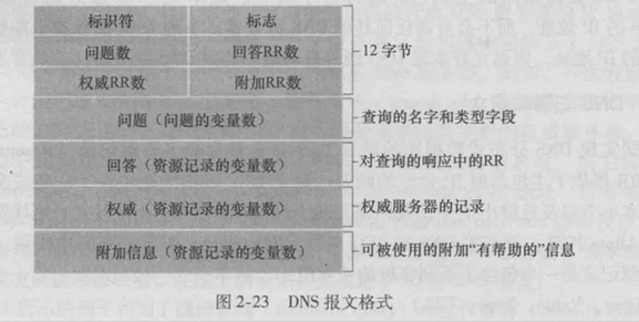 资源记录(Resource Record, RR):主机名到IP的映射,四个字段,Name、Value、Type和TTL,其中TTL为记录的生存时间。