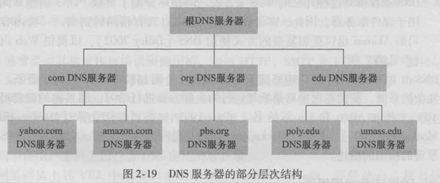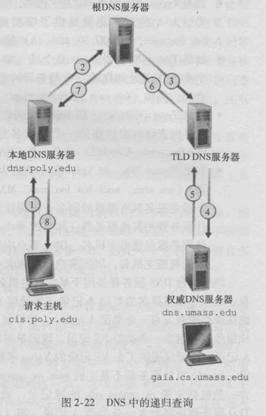* 本地DNS服务器:每一个ISP都有一台本地DNS服务器(不属于DNS服务层次结构)
