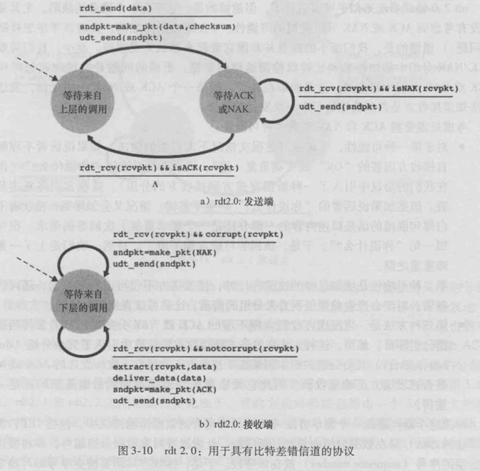 **经具有比特差错信道的可靠数据传输:rdt 2.0**