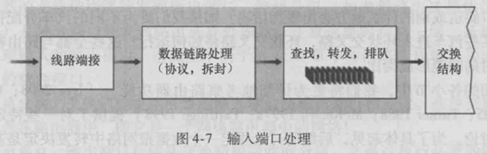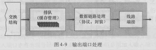 * 交换结构:输出端口竞争,多个分组抢夺一个输出端口时,会发生线路前部(Head-of-the-Line,HOL)阻塞。