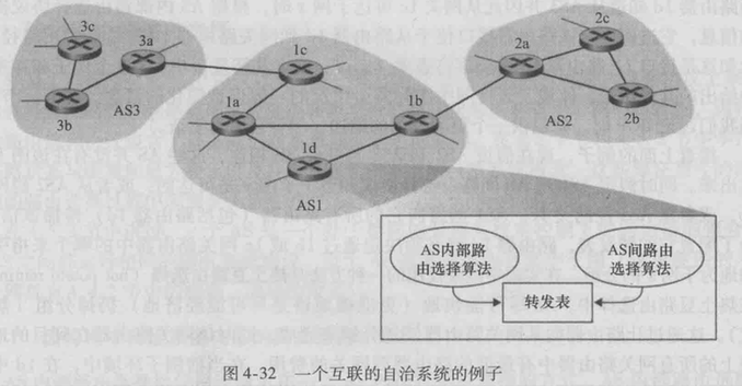 自治系统间路由选择协议(Inter-autonomous System Routing Protocol):不同AS间运行的路由选择算法。