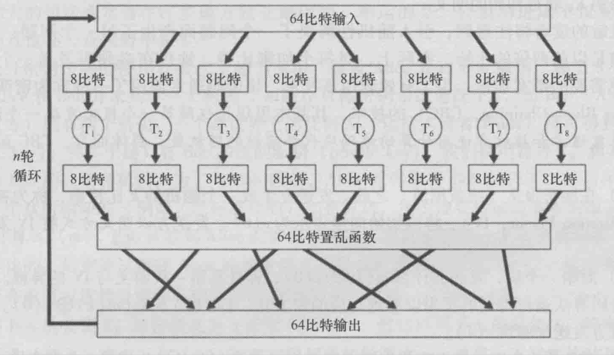 * 重复n次,循环的目的是让每个输入比特影响输出的大部分而不是全部。
