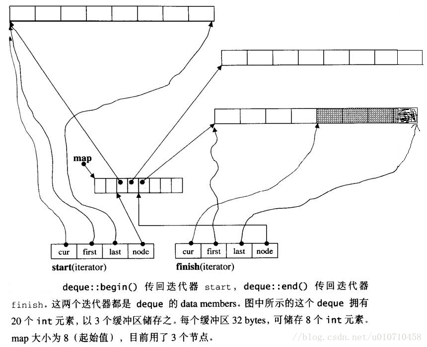 deque 是一种双向开口的连续线性空间,即可以在头尾两端分别做元素的插入和删除操作。对 deque 进行的排序操作,为了提高效率,可将 deque 先完整复制到一个vector上,排序后在复制回deque。