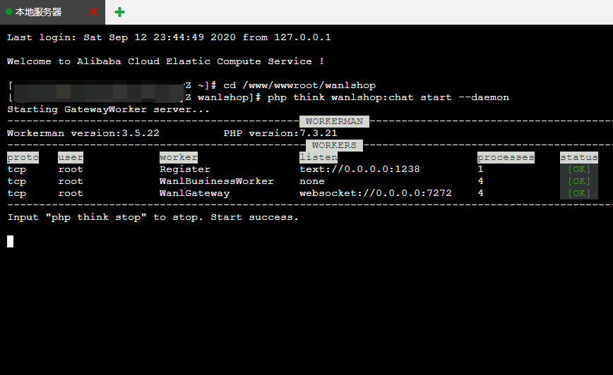 > 首次启动请使用 php think wanlshop:chat start !!!! 才可以看到是否有其他被禁用函数导致不正常启动,正常启动成功后 php think wanlshop:chat start --daemon