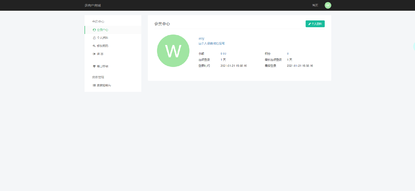 注册账号,进入用户中心