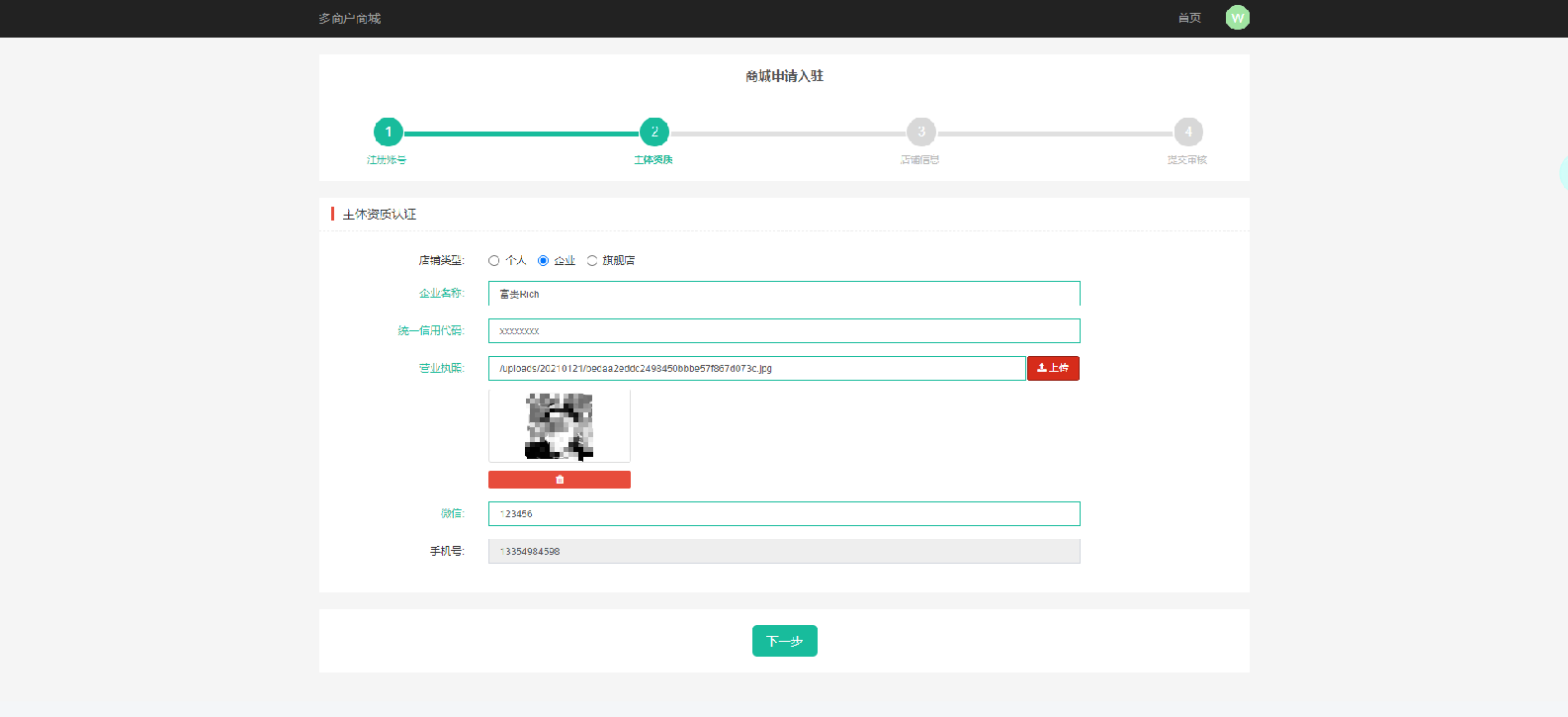 第三步,提交店铺审核
