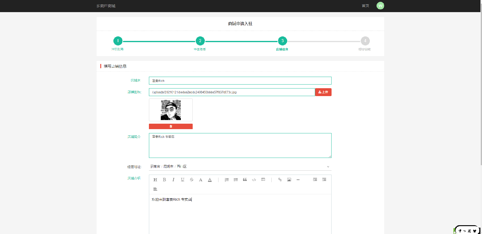 第二步,填写店铺信息