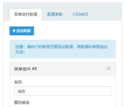 **重点**:我们可以看到 编辑窗口 中 有一个`追加数据`按钮,在自动获取组件中没有意义,这个主要用作类似菜单组件,填写新菜单使用