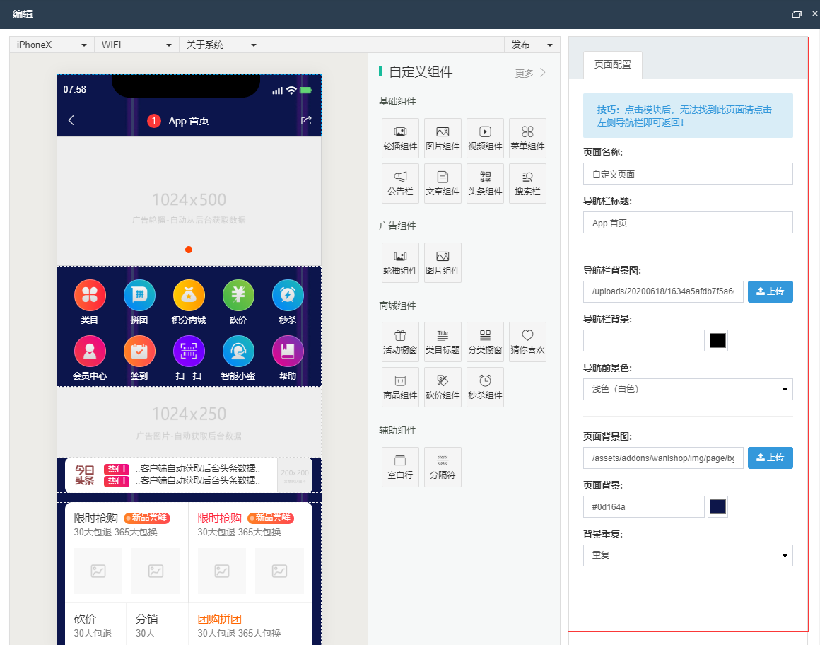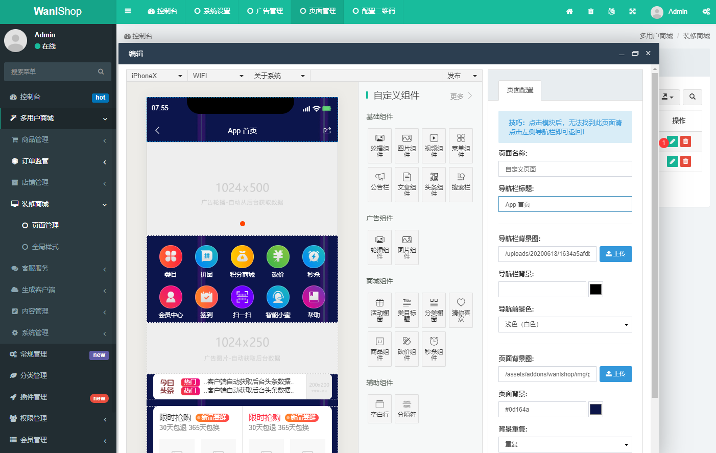 > 页面管理中你可以添加N个专题页,但首页智能有一个,每个页面都可以通过后台管理