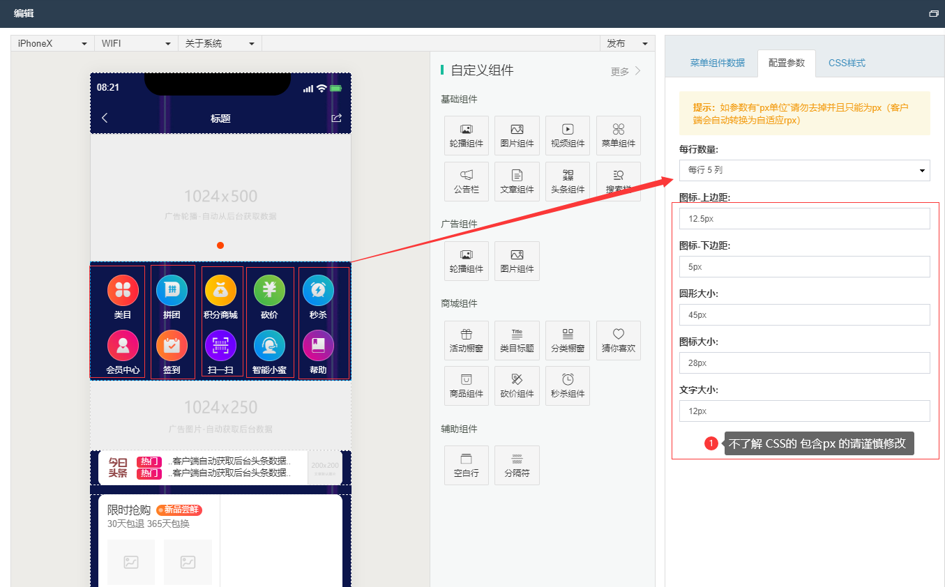 配置参数为 组件内部参数 配置,需要CSS知识,不擅长请不要改动包含 px的 选项