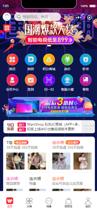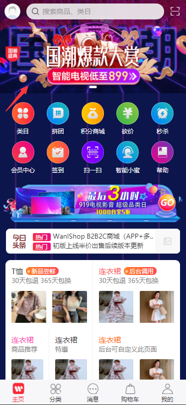 2. 客户端工作原理,通过`api/wanlshop/common/`一次性加载自定义首页、购物车、类目、系统配置、系统样式数据等