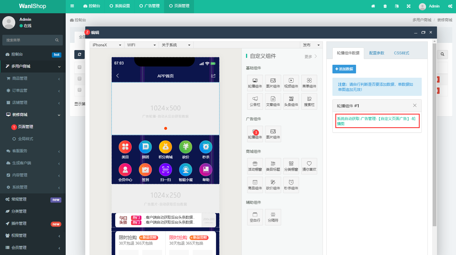 自定义页面广告可以暂时理解为首页广告,主要用作DIY页面时 自动调用的广告数据