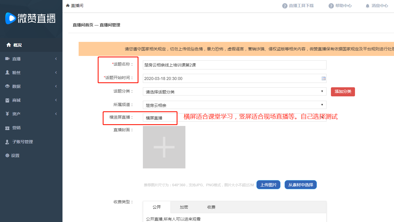 这样直播间就设置好了,下一步进行内容推流,直播前的准备。