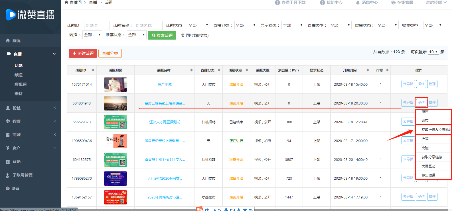 设置好后,返回直播列表,点右侧的管理,也可以再次点“管理”操作修改