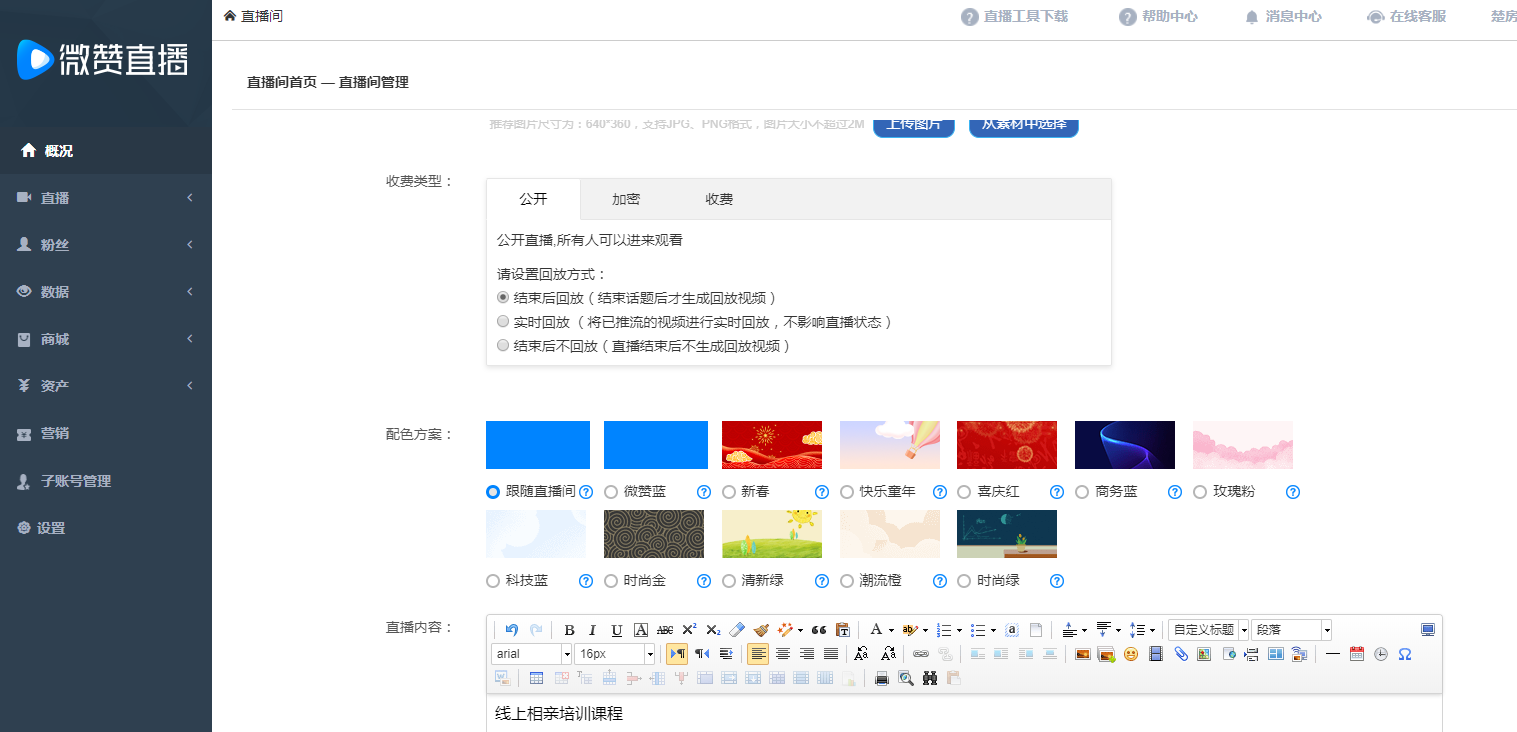 > 1,微赞直播,满足手机端小视频直播、PPT课堂模式、线下场景直播等。不需要做程序开发,可分享到电脑端、手机端和微信小程序里收看直播。