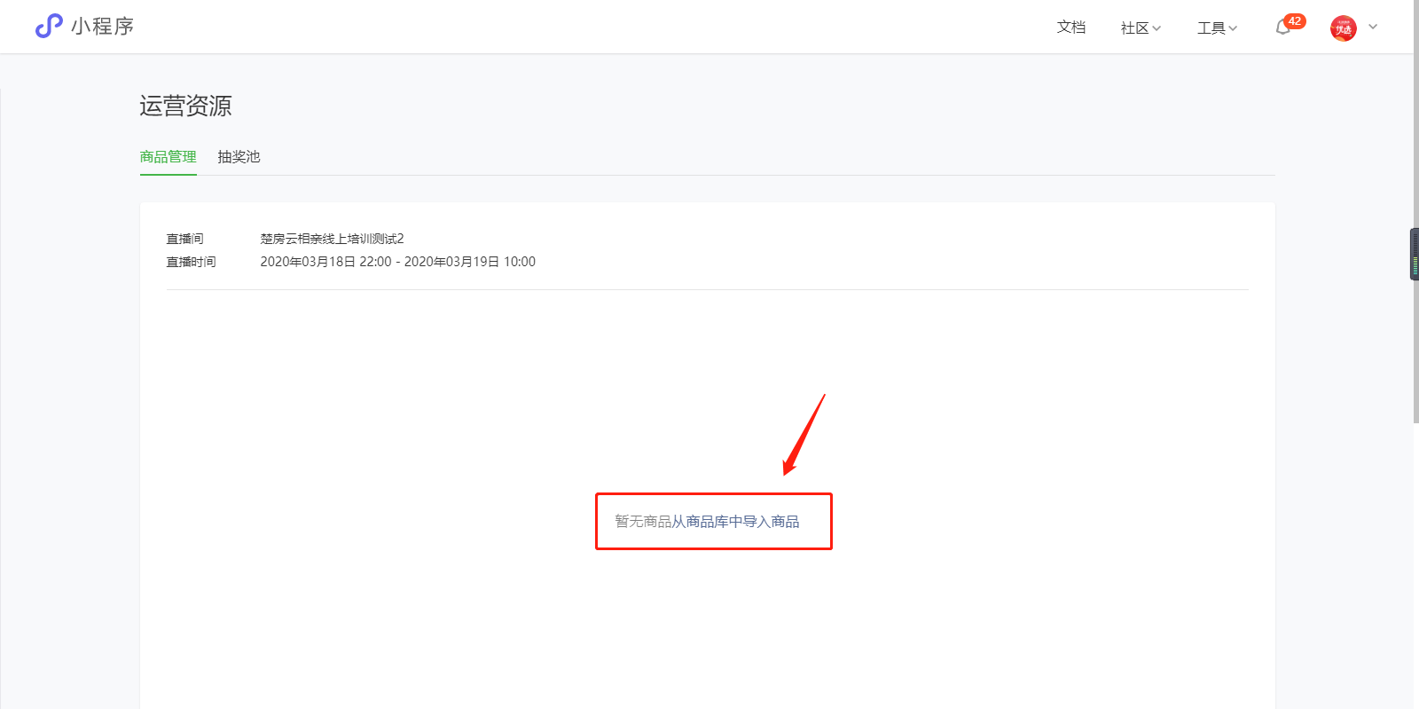 3、**给直播间导入商品(小程序后台)**