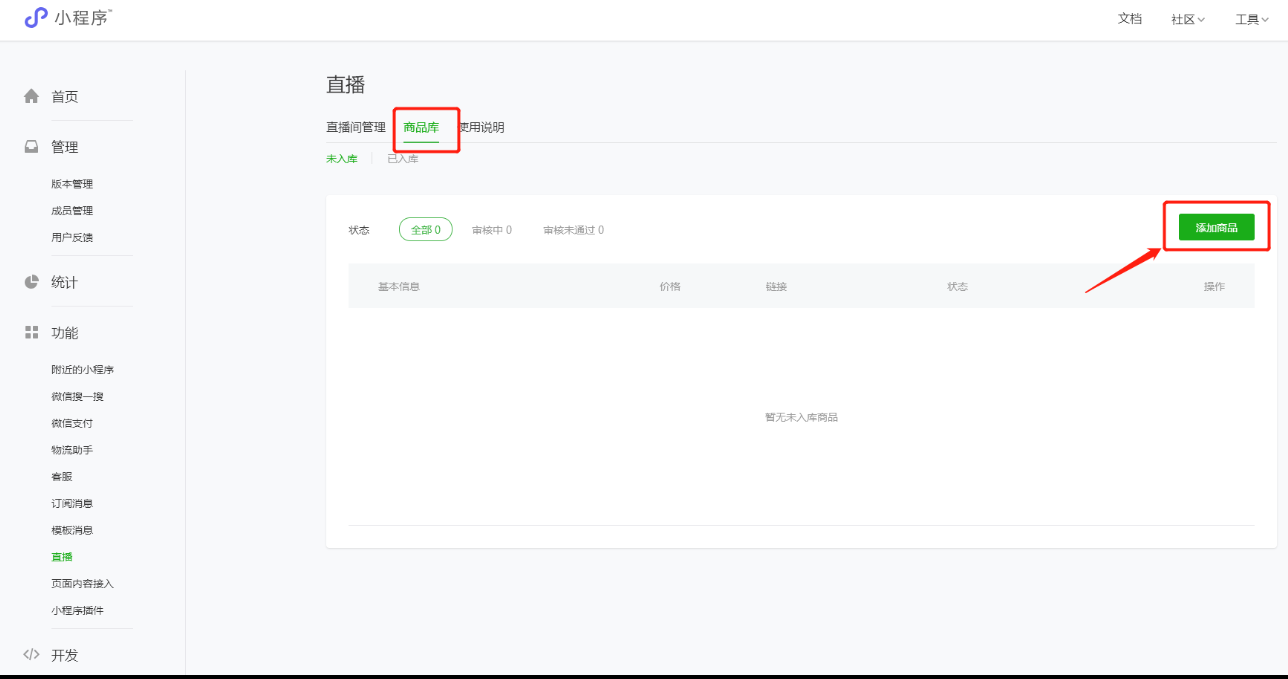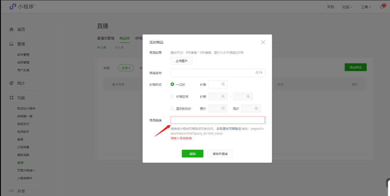 **小程序直播的商品添加**
