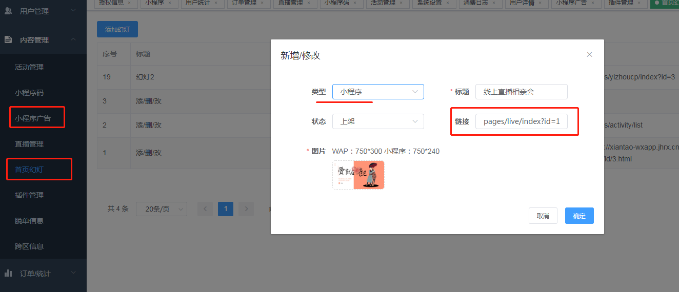 直播前可设置广告位、支持小程序广告和banner幻灯图-小程序版广告位