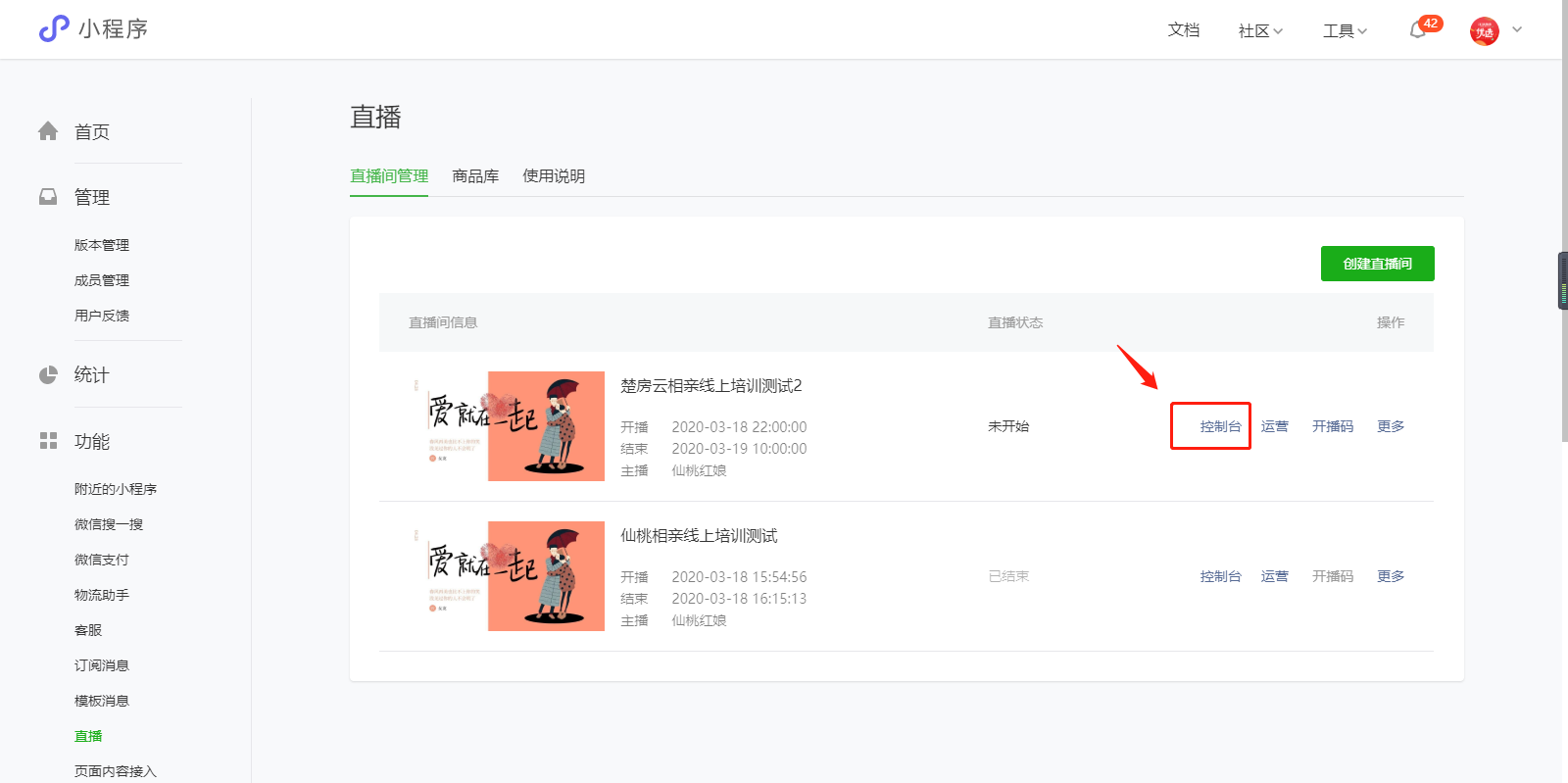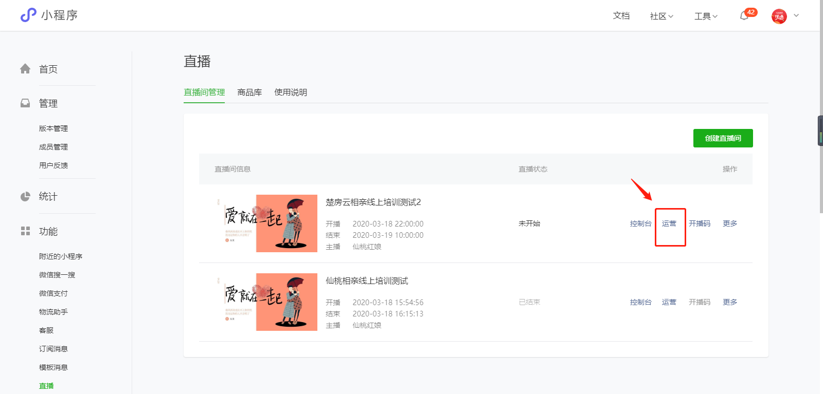 3、开通直播功能