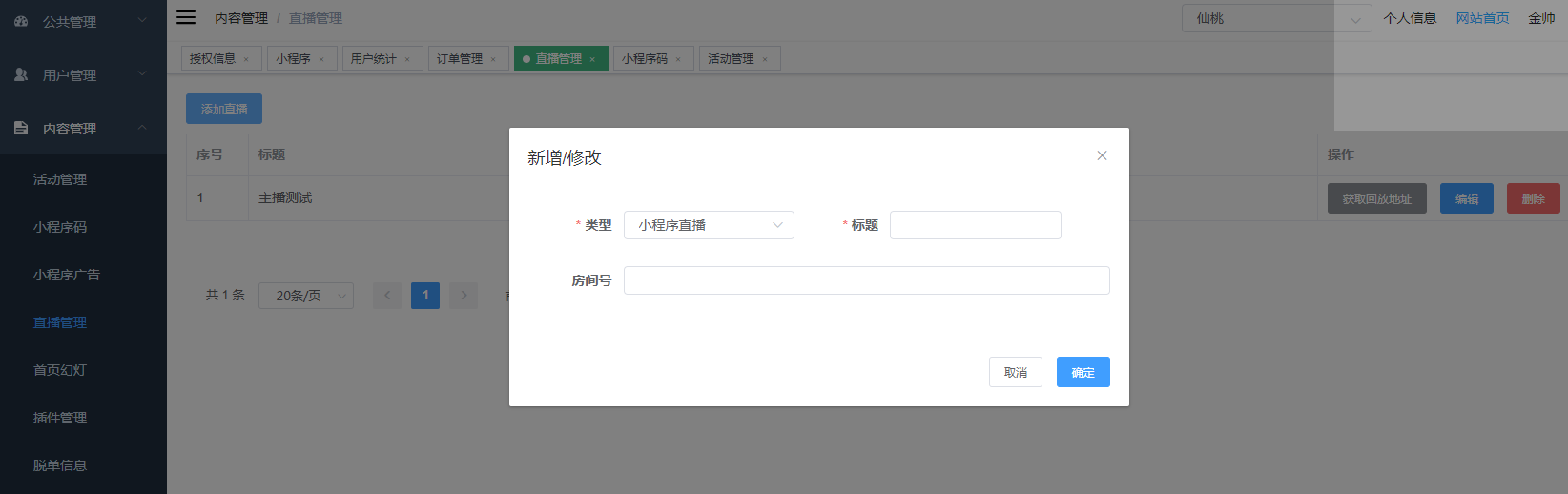 **1、后台增加直播间**