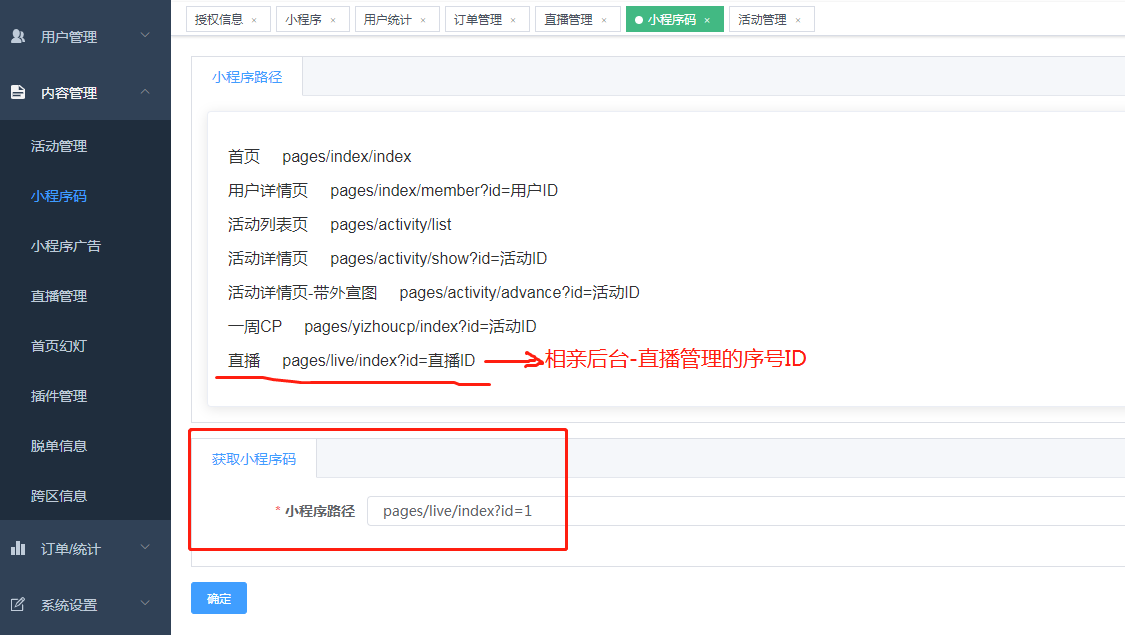 申请权限,增加直播间后,可在相亲管理后台关联直播间。直播结束后可获取回访地址。